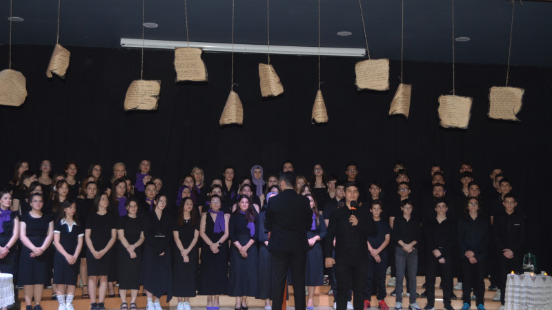 Samsun Uğur Okulları İlkadım Kampüsü idareci, öğretmen, çalışan ve öğrencilerinden oluşan Müzik Öğretmeni Tolgahan AKPINAR şefliğindeki koro, birbirinden güzel eserleri seslendirdi. Bir diğer müzik öğretmeni Yasin TEMİZ’in piyano ve bağlama ile eşlik ettiği koroya öğrencilerden oluşan drama ekibi de görsel anlamda destek verince müzikal tadında bir gece ortaya çıktı.
